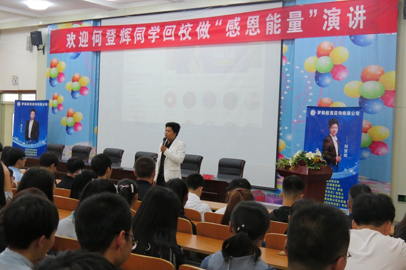 为帮助我系2015级毕业班学生进一步认清社会形势,明确奋斗目标,树立信心,学会感恩,顺利找到实习单位,我系特别邀请我院2004级财会专业优秀毕业生何登辉先生于5月22日下午为我系全体毕业生做以“感恩能量”为主题的励志演讲。