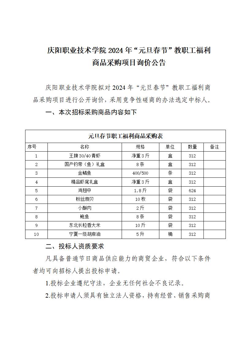 bwin必赢2024年“元旦春节”教职工福利 商品采购项目询价公告