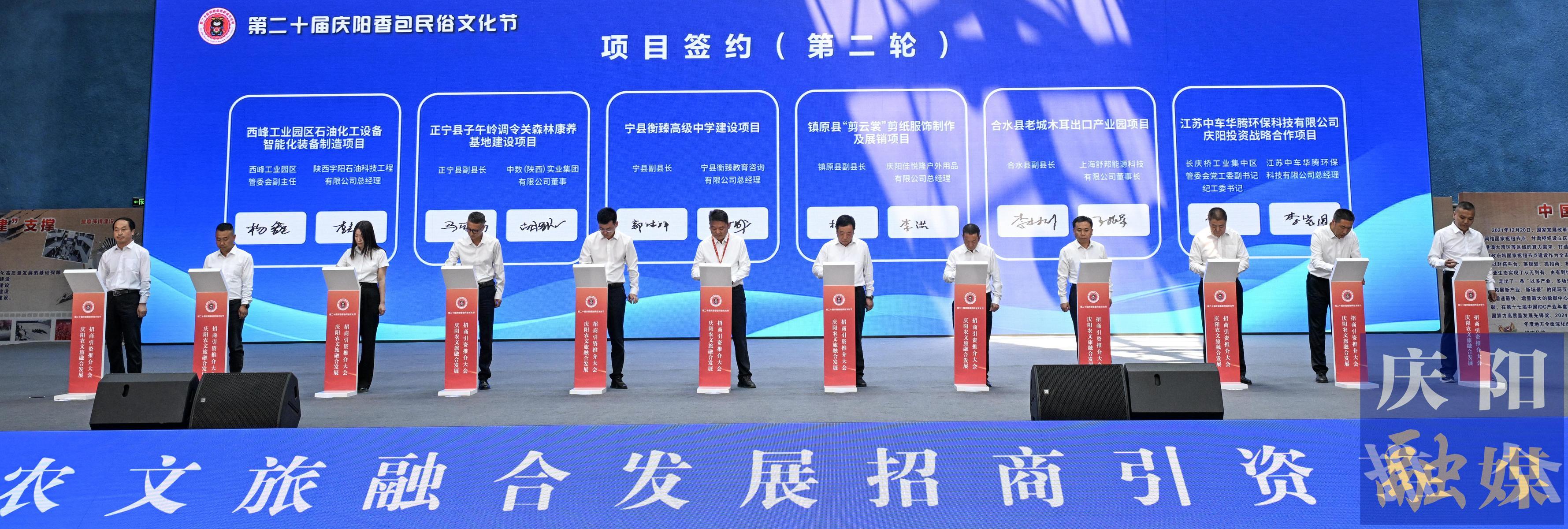 会上,中国社会科学院财经战略研究院研究员、博士生导师魏翔作了题为《全国农文旅融合发展要点兼对庆阳相关发展的思考》的主旨发言;庆阳文旅推介官推介了我市文化旅游资源、项目和支持政策;正宁县子午岭调令关森林康养基地建设项目、镇原县“剪云裳”剪纸服饰制作及展销项目等32个项目成功签约,签约金额96.64亿元;视频连线了在杭州举行的杭州(庆阳)“高原妈妈”国际艺术馆现场展示暨庆阳文旅产品销售杭州签约仪式,见证了项目签约。