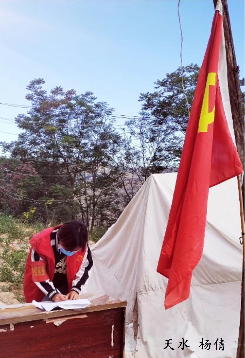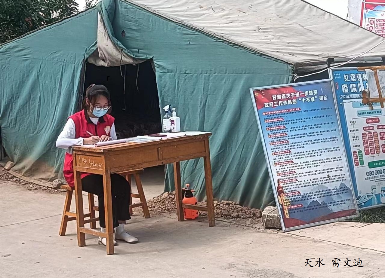 天水的席庚弟,一返家就主动在家乡甘谷县大庄镇当志愿者,每天给路过的行人测体温,检查健康码和行程码,登记人员出入信息等。市区的雷文迪、泰安县的杨倩、张家川县的王岚,每天在村口值守点登记过路车辆和行人信息、测体温,宣传乡亲们要戴好口罩,在全员做核酸的时候维持秩序,帮助医护人员准备健康码、消毒等。