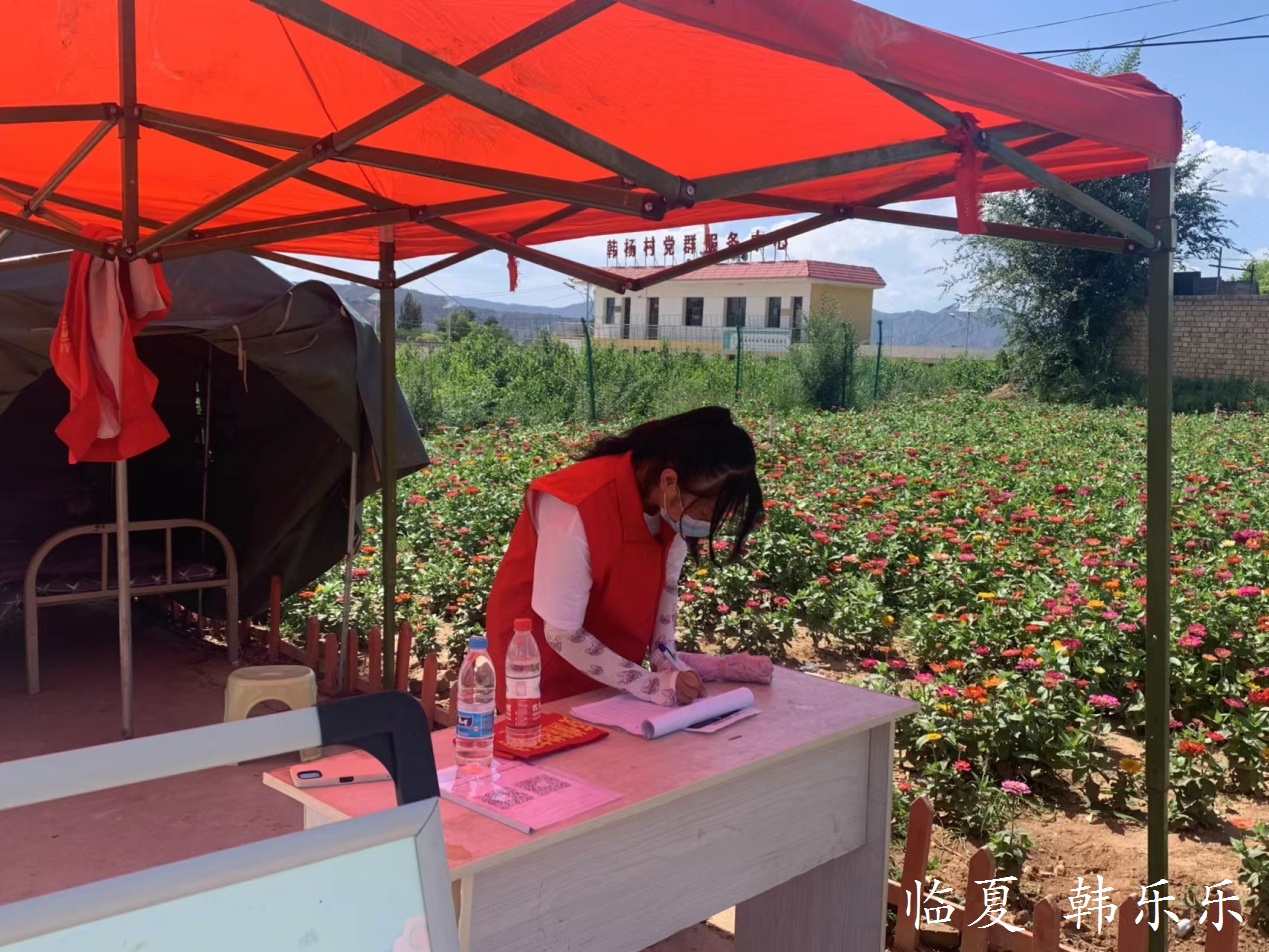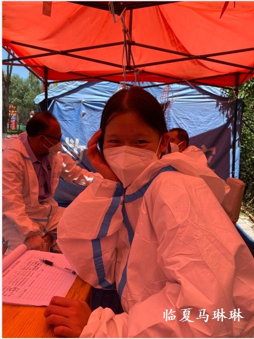 临夏的郭文欣在临夏市区做志愿者,韩乐乐在东乡族自治县河滩镇做志愿者,马琳琳在东乡县龙泉镇做志愿者。每天在村口值守点登记过路的车辆和行人信息,在村内各个巷道宣传村民戴好口罩,在全员做核酸的时候维持秩序,帮助医护人员准备健康码、消毒,帮助老人进行申领健康码等。