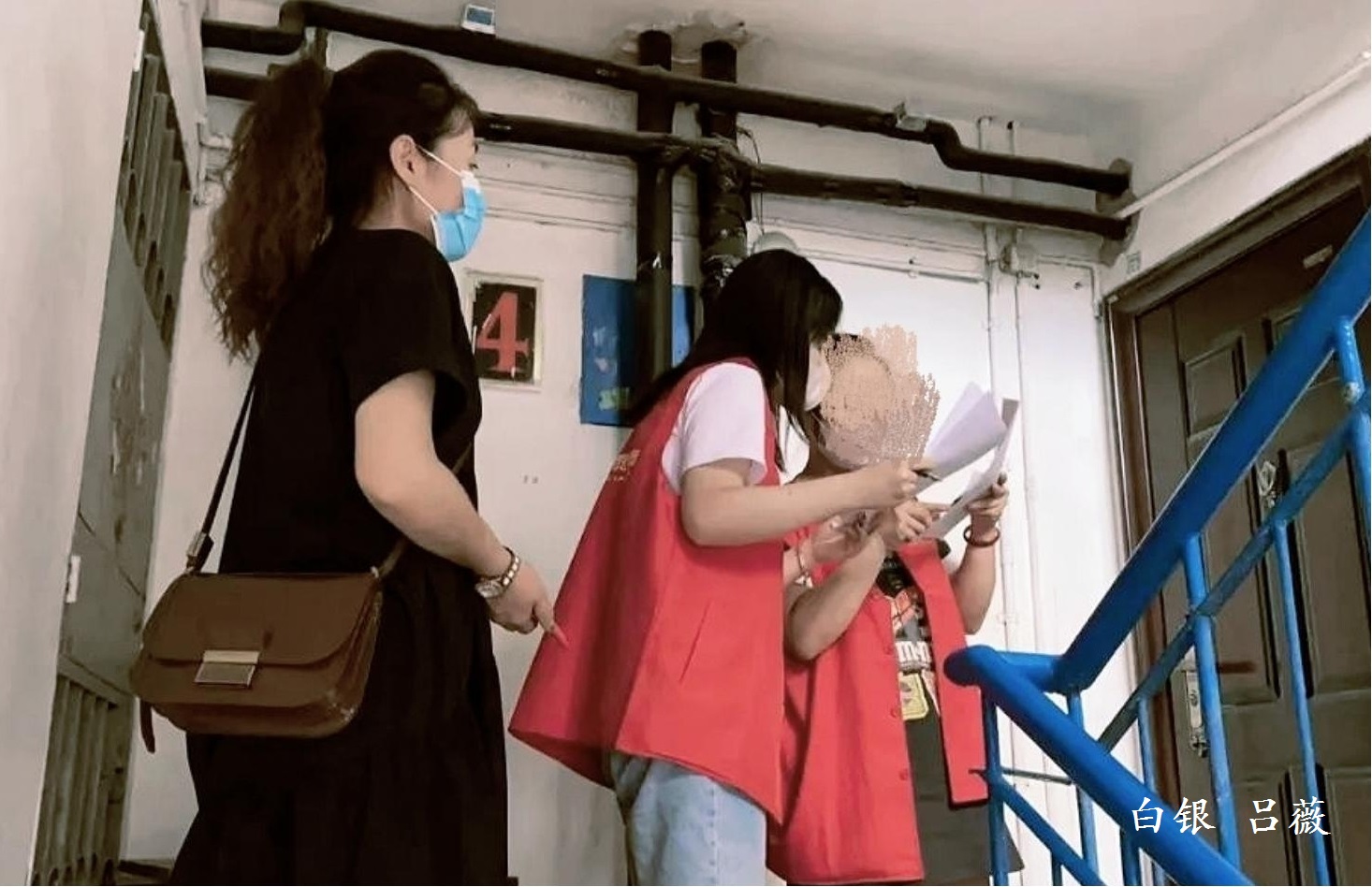 白银的吕薇在会宁县社区参加志愿活动,登记来往车辆及人员的疫情防控信息。