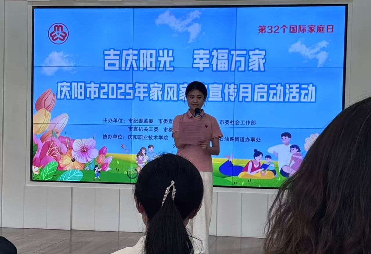 5月15日,庆阳市“吉庆阳光・幸福万家”家庭服务暨家风家教宣传月启动活动在西峰区石油路街道宁县西路社区举行。教育系学子作为“爱心姐姐”志愿者全程参与,以专业服务和青春热情为“一老一小”群体送去关怀,成为本次活动中最亮眼的风景。