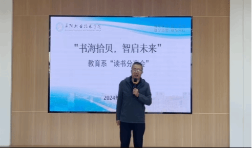 2024年10月24日,教育系在学院图书馆报告厅成功举办了本学期的读书分享会。此次活动由教育系党委书记王晓文主持,教育系教学主任赵超等8名教师参与。旨在鼓励学生深入阅读,分享学习心得,促进学术交流,提升学术氛围。