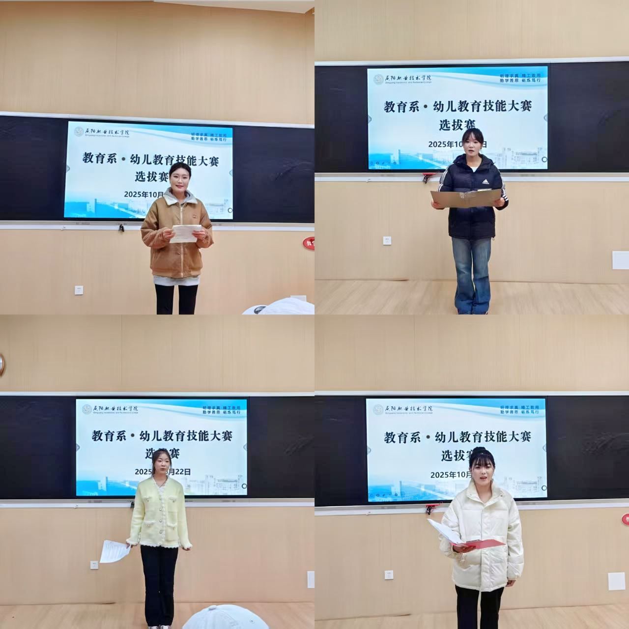 为深化教育教学改革,强化学生专业技能,选拔优秀人才,10月22日下午,教育系在各实训室成功举办了2025年技能大赛系部选拔赛。本次选拔赛吸引了来自系部24级与25级的70余名学生同台竞技,充分展现了教育系学子积极向上的精神风貌和扎实的专业功底。