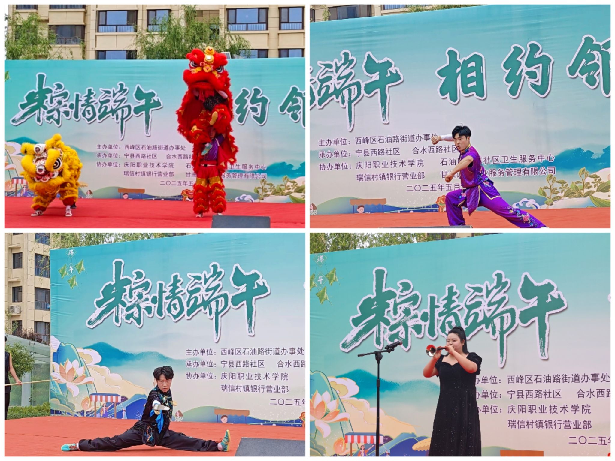 粽叶飘香迎端午,歌舞传情暖民心。5月26日下午,石油路街道宁县西路社区“粽情端午 相约邻里”主题系列活动在陇悦家园小区举行。教育系学生以文艺志愿服务为桥梁,给社区居民献上一场视听盛宴,共庆端午佳节。