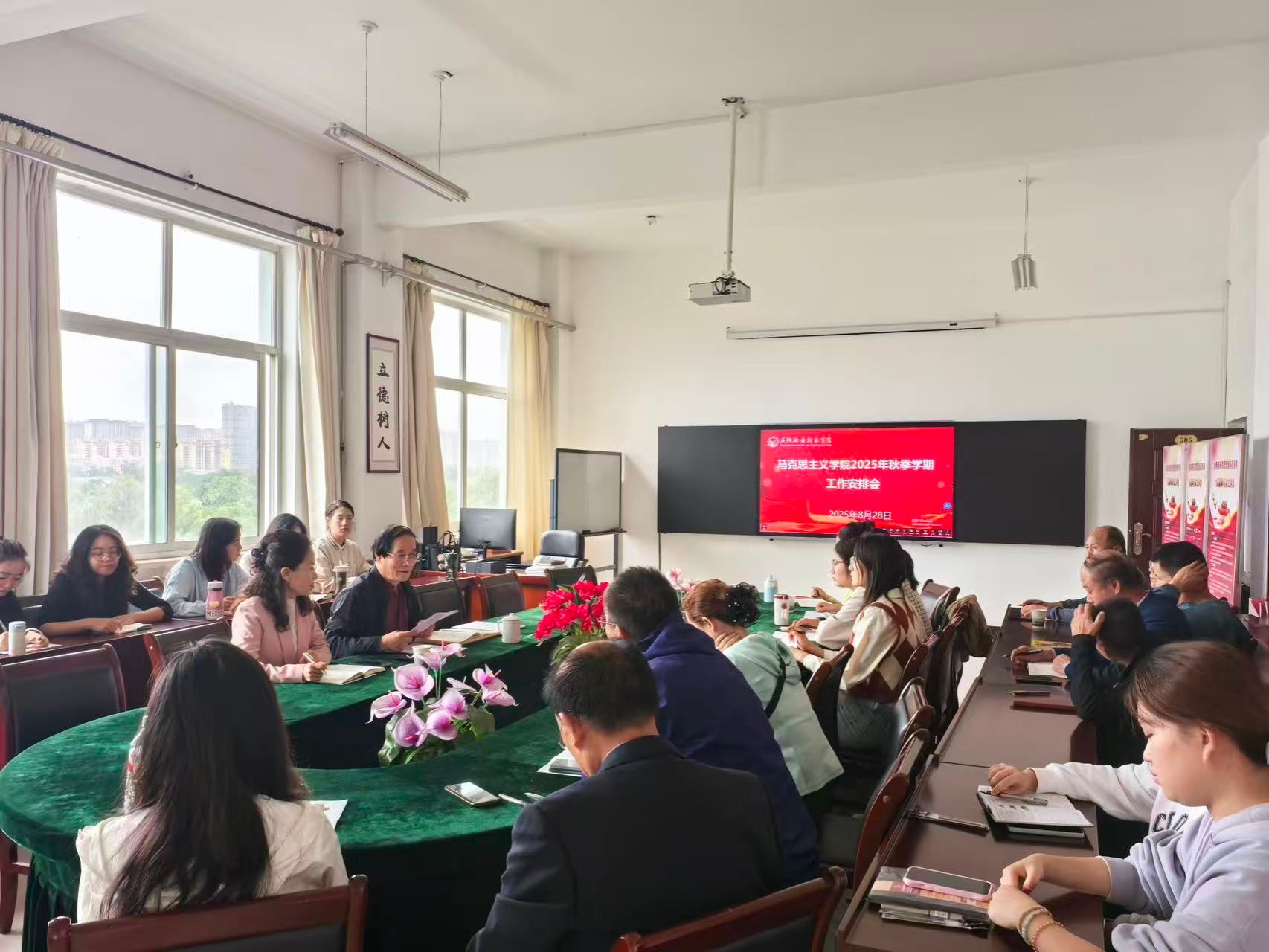 8月28日下午,马克思主义学院召开2025年秋季学期工作安排会议,全面部署新学期各项工作。院长刘鹏辉、副院长刘嘉及全体教职工参加会议。