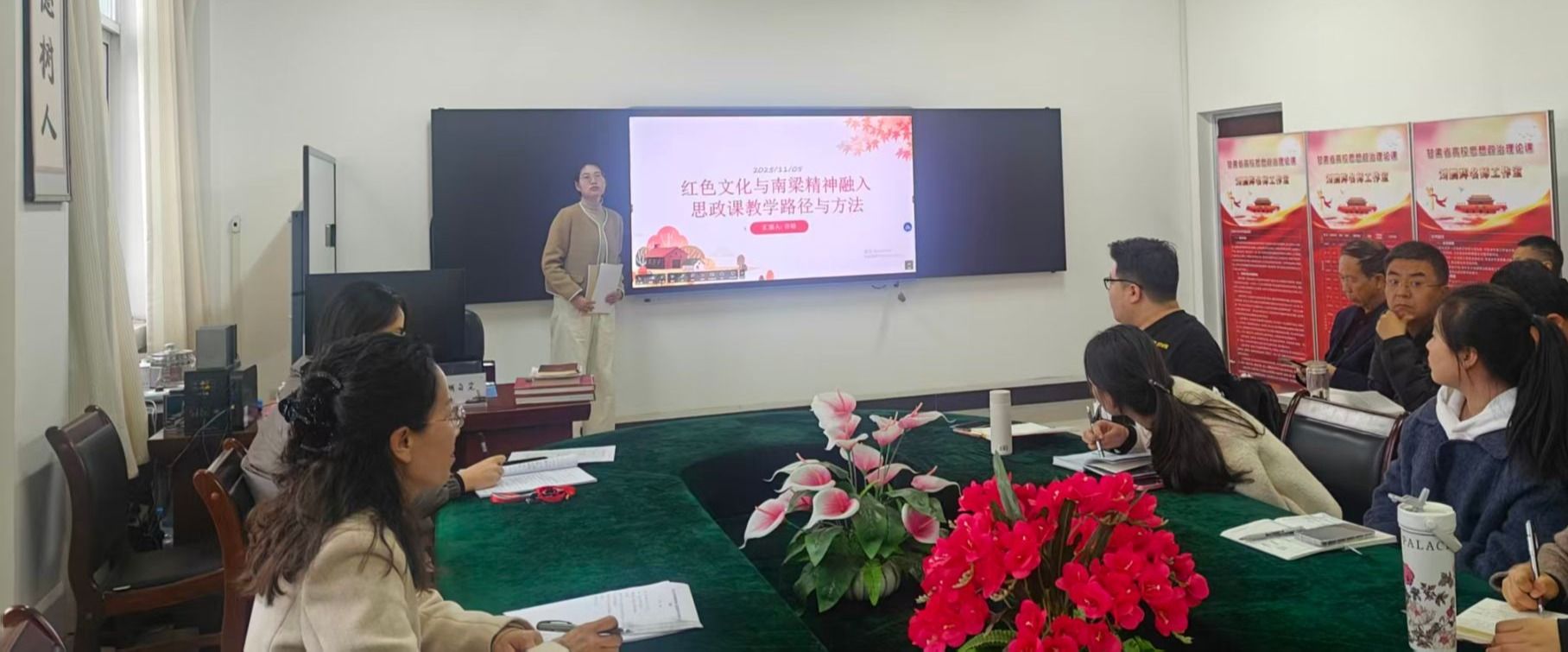 为推动红色文化与南梁精神深度融入思政课教学,2025年11月5日,马克思主义学院在树人楼505室组织召开“红色文化与南梁精神融入思政课教学路径与方法”专题研讨会,会议由马克思主义学院副院长刘嘉主持,全体思政课教师参加。