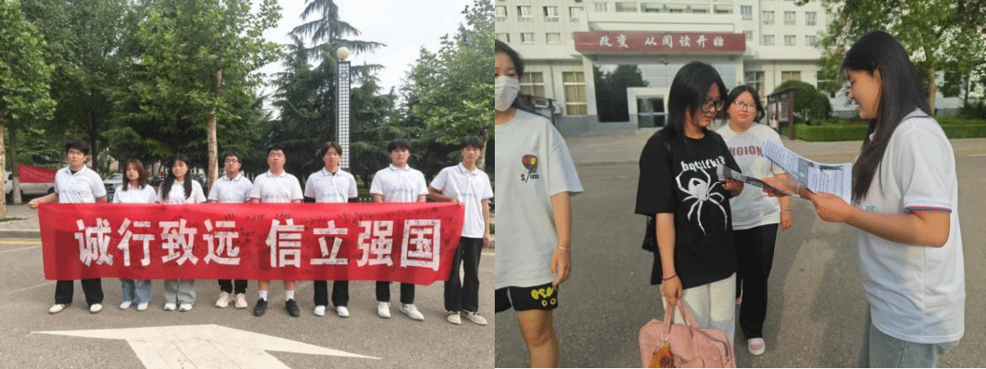 2025年6月20日我系在学院中路举行诚信签名活动,现场布置紧扣“诚信志远,信立强国”主题。主背景墙以中国红为底色,搭配金色“诚信”字样与长城、华表等元素,彰显庄重氛围;进一步渲染活动氛围。号召全体参与者以诚信立身、以诚信兴业、以诚信强国。随后,参与者有序走上签名台,在印有活动主题的巨型横幅上郑重签下自己的名字,许下坚守诚信的庄严承诺。