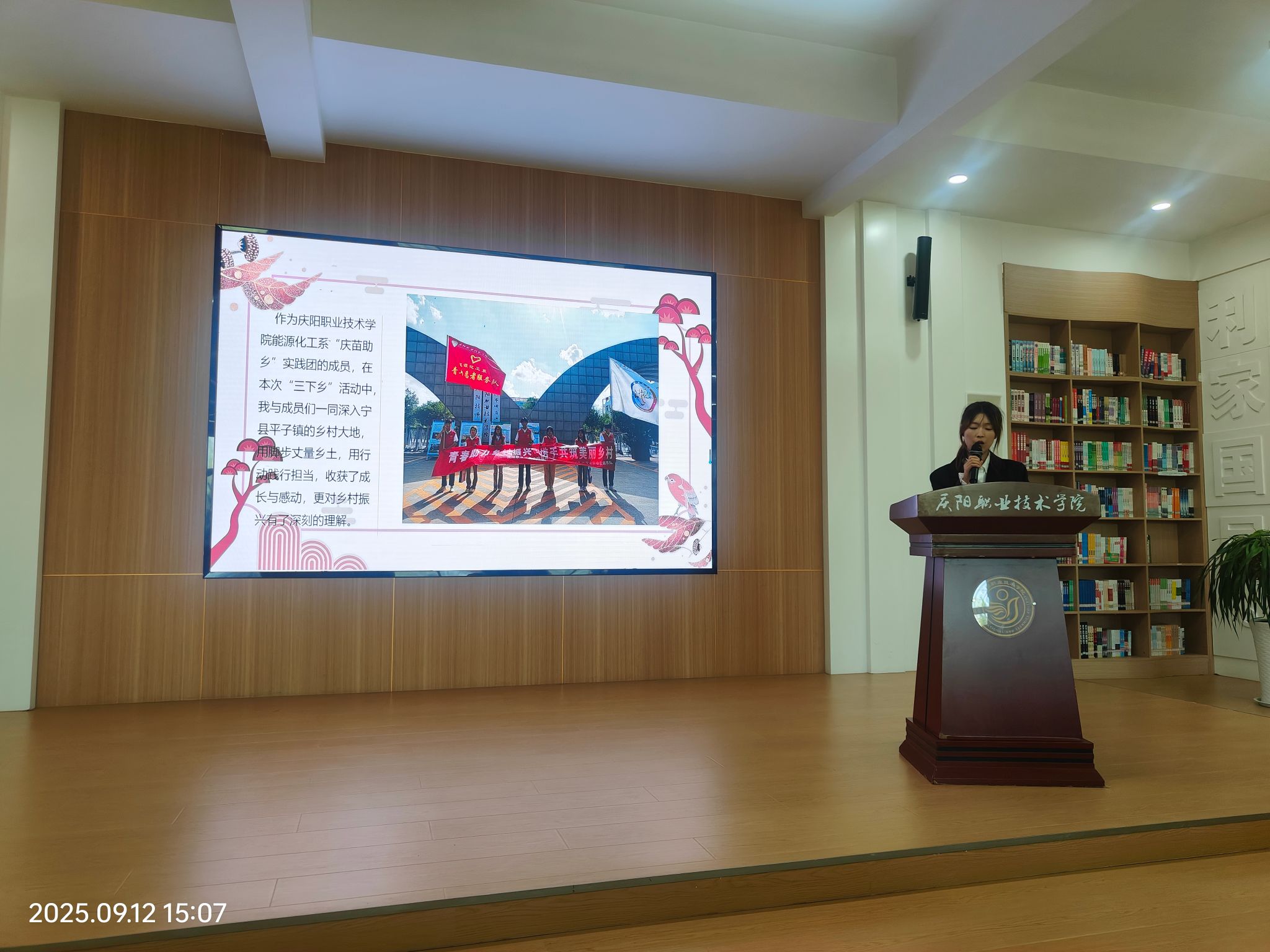 为深入学习宣传贯彻习近平新时代中国特色社会主义思想和党的二十大精神、党的二十届三中全会精神,切实发挥共青团在高校思想政治工作中的主力军作用,引导和帮助广大青年学生在社会课堂中受教育、长才干、作贡献,争做有理想、敢担当、能吃苦、肯奋斗的新时代好青年。青春的脚步,踏遍祖国山河;实践的火花,点燃青春梦想。在新学期的开始,2025年9月13日我系隆重举行了2025年实践归来话成长暑期“三下乡”交流分享活动。