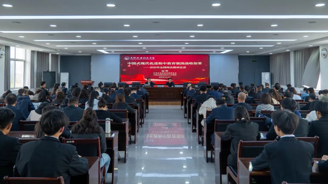 为全面深入学习贯彻习近平总书记在全国两会期间的重要讲话精神和全国两会精神,根据省委教育工委统一安排,4月10日下午,学院在树人楼五楼会议室举行“理响校园·培根铸魂”全国两会精神示范性宣讲活动。省委教育工委全国两会精神示范性宣讲团第十二组组长、甘肃省优秀专家、兰州石化职业技术大学二级教授何华应邀作宣讲报告。学院在家领导、各系党支部书记、全体班主任辅导员、思政课教师以及团学干部代表聆听学习。宣讲活动由党委副书记、...