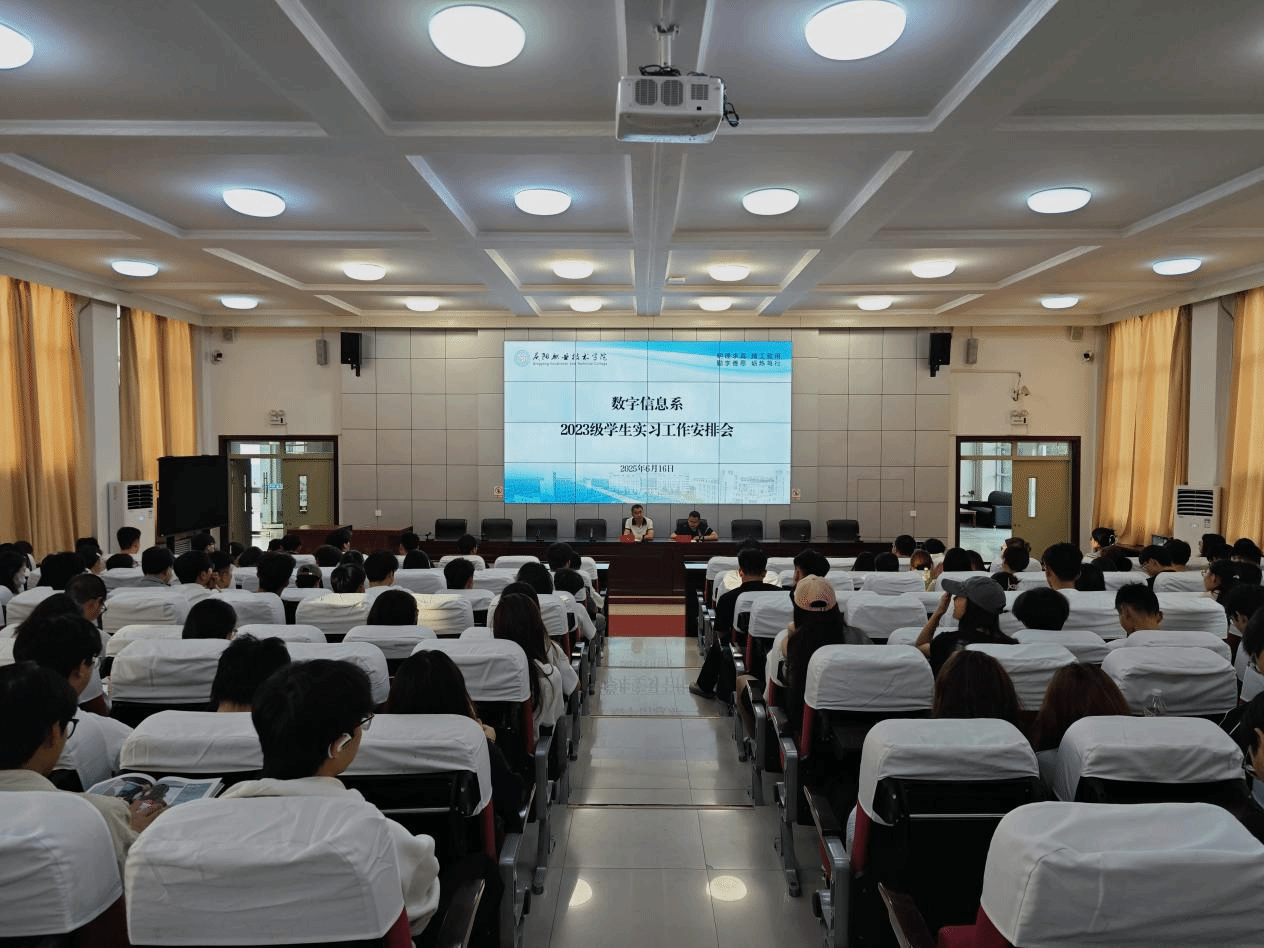 为推进岗位实习规范化管理,数字信息系于6月16日晚在北阶梯教室召开实习工作安排会。系主任付涛、副主任牛涛及2023级全体学生参加。