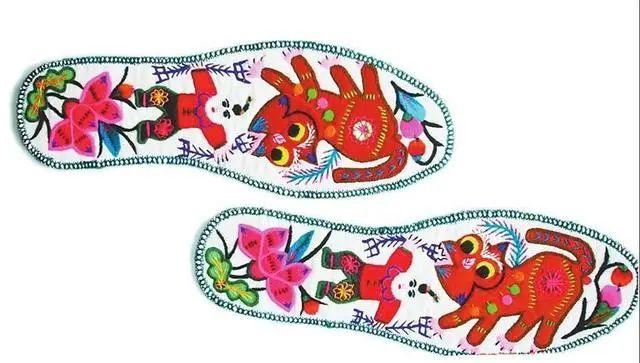 拼布与刺绣结合的鞋垫