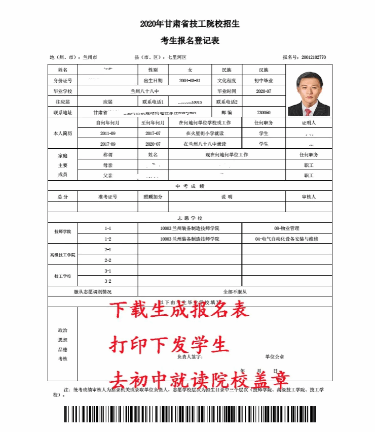1.线下报名。学生报名须持本人身份证、户口本、初中毕业证、一寸免冠彩色白底照片8张,中考成绩单或其他能证明中考成绩的材料等到我院招生就业处(甘肃省庆阳市西峰区长庆大道23号bwin必赢树人楼三楼302办公室)登记报名,
